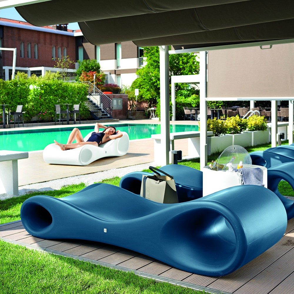 La forma รจ stata studiata per essere il piรน confortevole possibile, senza tralasciare i dettagli allโinsegna della praticitร , come il foro per il drenaggio dellโacqua e le due aperture che, allโoccorrenza, possono diventare comodi ripiani di appoggio in assenza di un tavolino.