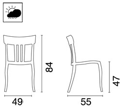 Sedia impilabile in polipropilene rinforzata con fibra di vetro.